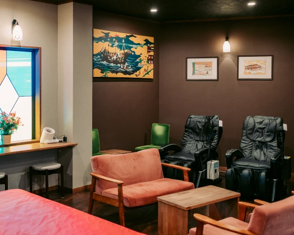 湯上がりには自販機やマッサージ機を備えたロビー空間で、ほっと一息。